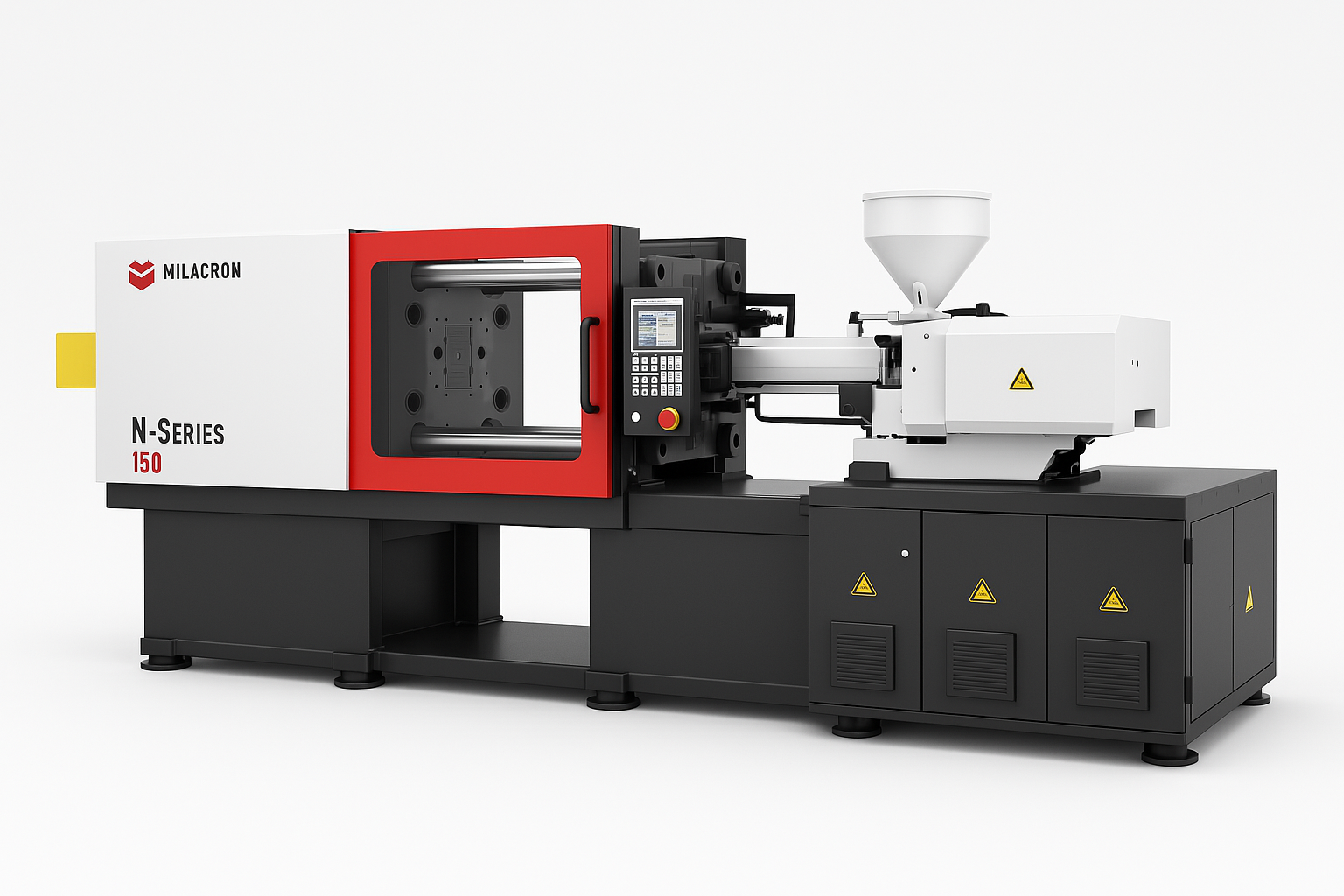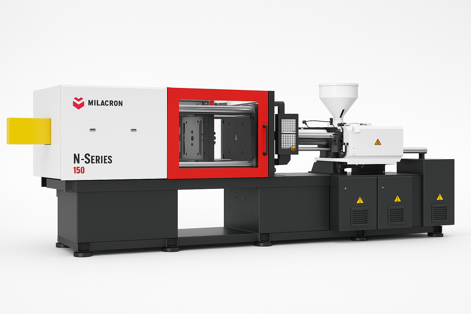 Plastic pellets are melted and injected into the mold under high pressure.